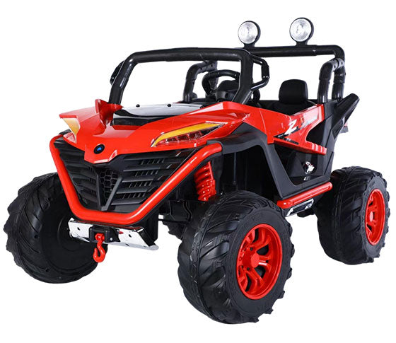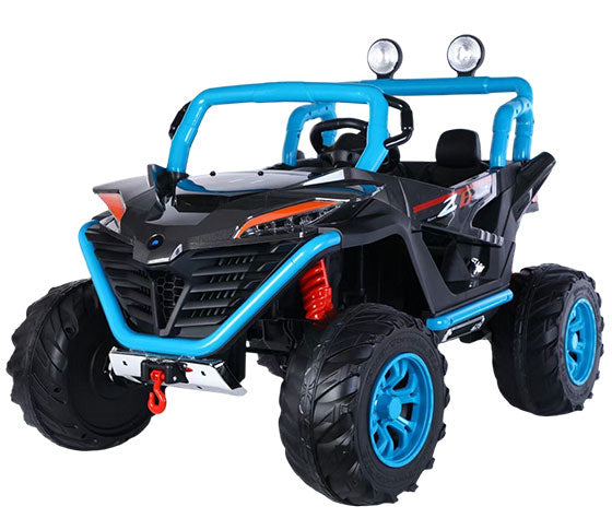 12V7A battery,4WD, central control music version, story, USB, Bluetooth, steering wheel side, 2.4G remote control, soft start forward and reverse, two seats, pull rod, double doors, one-button installation of the steering wheel, LED headlights, LED searchlights, silent pulley, four-wheel shock absorbers